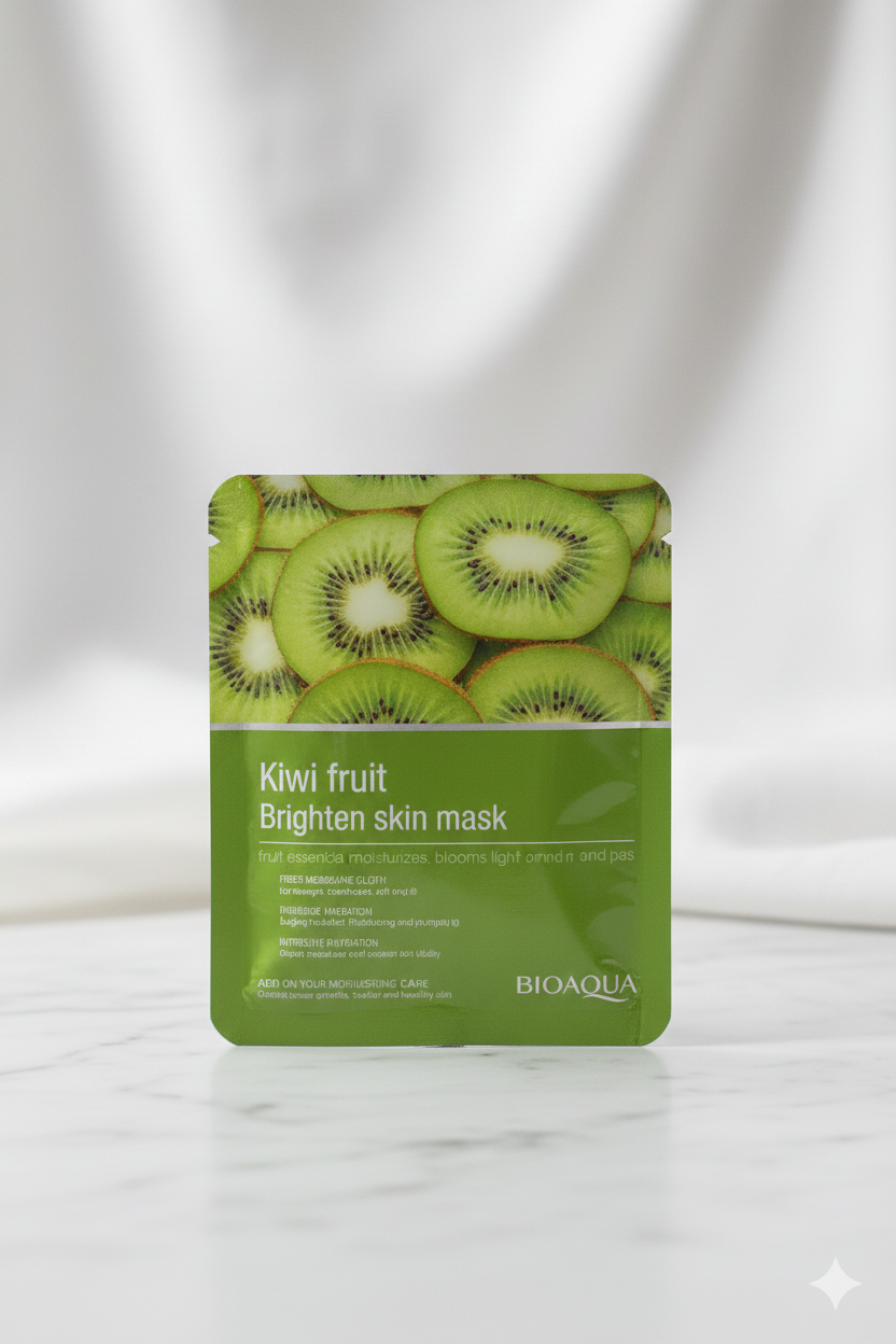 Bioaqua Kiwi Fruit Brighten Skin Mask. It is a sheet mask designed to provide intensive care for dull and dehydrated skin.